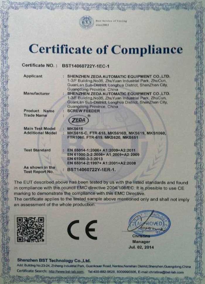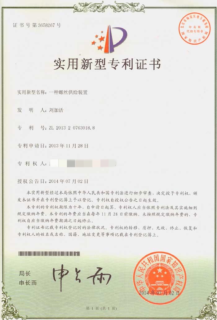 螺絲機專業(yè)生產(chǎn)廠家已通過ISO9001質(zhì)量管理體系認(rèn)證